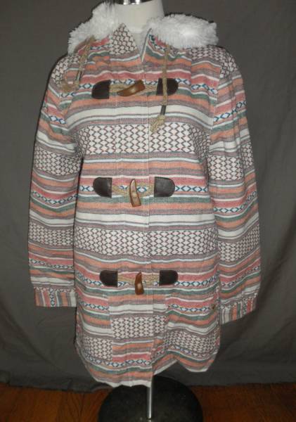 > 【ROXY】ネイティブアメリカン系柄 ボアフード付 ハーフJKT US M