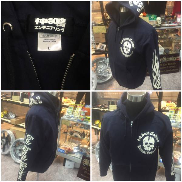 - 神鳴オリジナルGOD SOUND MACHINES!SKULLパーカー 400SS 350SS 500SS 750SS KH250 KH400 KH500 マッハ Z1 Z2 Z750 神鳴エンヂニアリング