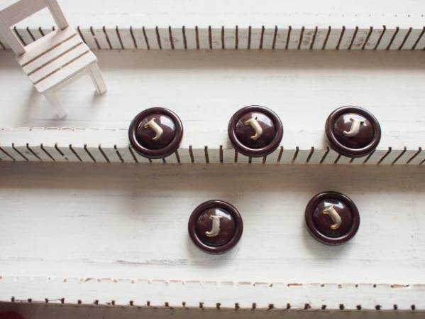 - レトロビンテージ手芸ボタン*アンティークな雰囲気アルファベットJ*5個☆リメイクデコパーツ装飾