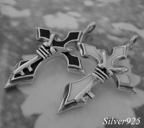 - シルバー925銀のハート キー鍵 ハンギングクロス十字架ペア ペンダント2個set