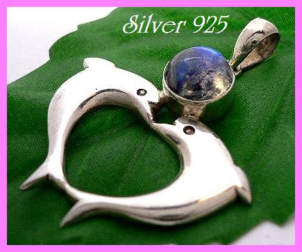- シルバー925銀の天然石ムーンストーン[ブルー]ドルフィン イルカ ペンダント