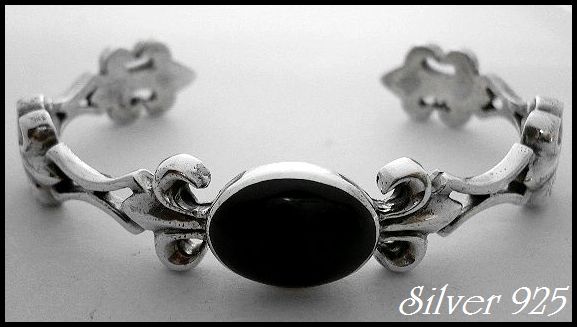 - シルバー925純銀サイドフレア天然石オニキス付バングル/1点限り