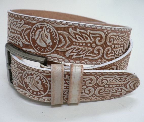 - 牛革テキサスホース型押し レザーベルト白/100種以上がALL20%OFF