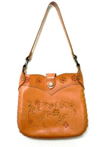 - 牛革 花柄 型押しハンドバッグ/ナチュラル/レザーバッグ20%OFF