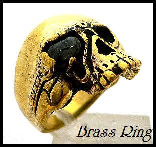 - 真鍮製Brass天然石オニキス眼 スカル髑髏 ブラス リング/15号.23号より