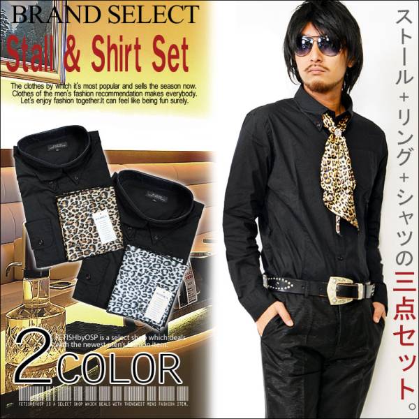 - RMANICA豹柄ストール付きドレスシャツ新品黒イエローL