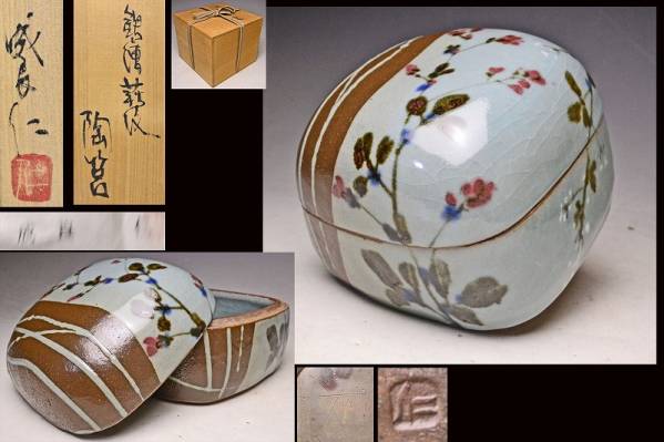 - 成良仁( 南田是也 )★ 鉄絵萩文陶筥 ★ 共箱栞 ★ 造形作家 ★ 物故巨匠