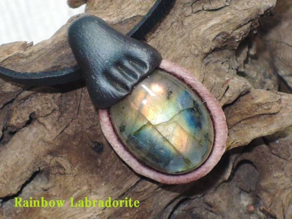 - ★レインボーラブラドライト★天然石革紐ネックレスkamesan
