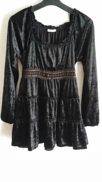 > 303◆ベロアティアード長袖プルオーバー 黒 ブラック axes femme アクシーズ