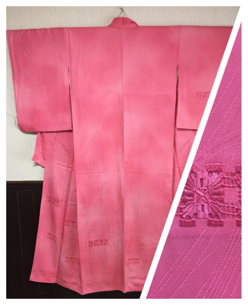 - 【色無地付下げ】正絹 袷 身丈157.5cm ピンク色 汕頭刺繍 躾けあり ススキの穂の様な文様