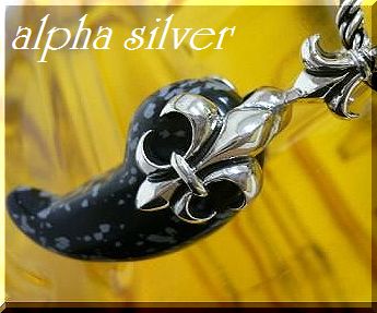 - シルバー925銀の天然石 勾玉スノーフレーク オブシディアン百合紋リバーシブル ペンダント