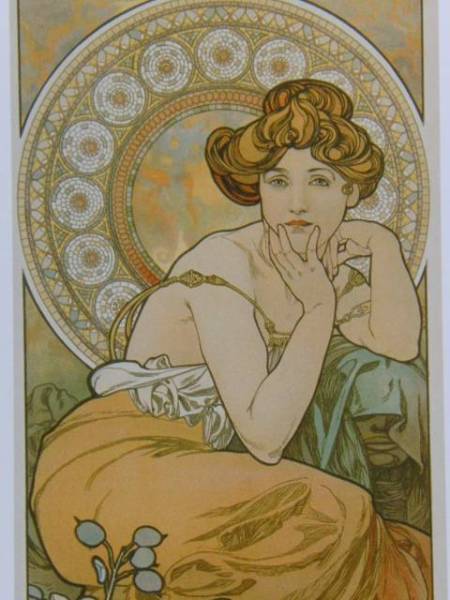 - アルフォンス・ミュシャ、『トパーズ』、希少画集画、高級新品額・額装付、送料無料