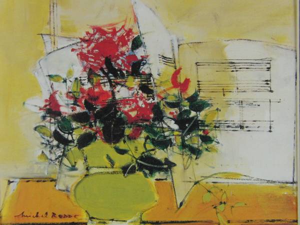 - ミシェル・ロッド、楽譜とバラ、希少画集画、新品額装付、salt