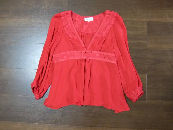 - cortesworksの赤水玉100%シルクブラウス38号美品