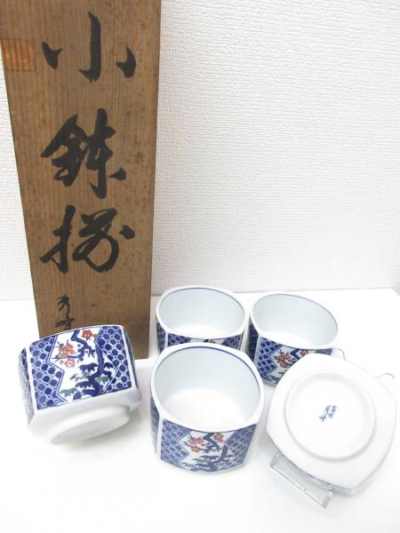 - 未使用品■有田焼 秀峰作 小鉢揃 5客 木箱 銘あり 管理1707 F-3