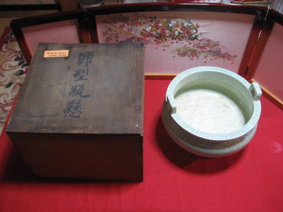 - (鳥羽庵)うぶだし骨董唐物見事鼎形瓶懸火鉢