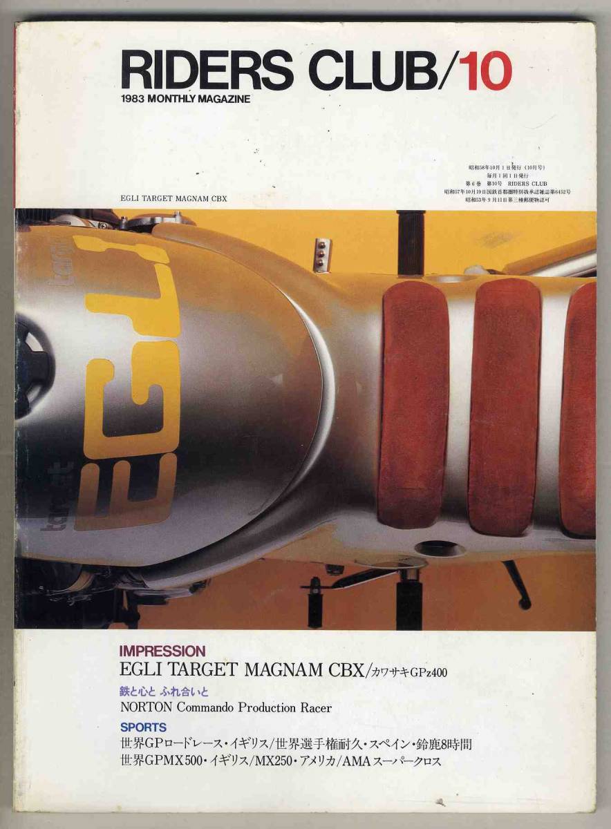 書名/記事: 83.10 ライダースクラブRIDERS CLUB/エグリ・ターゲット・マグナムCBX、カワサキGPz400、ノートンコマンド・プロダクションレーサー、世界GP・イギリス、鈴鹿8時間耐久、…