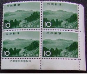 - 未使用 昔の切手【銘版入り田形】2種組 阿蘇国立公園 阿蘇五岳10円 1965.6.15 + 第1次国宝S1 飛鳥時代 百済観音1967.11.1