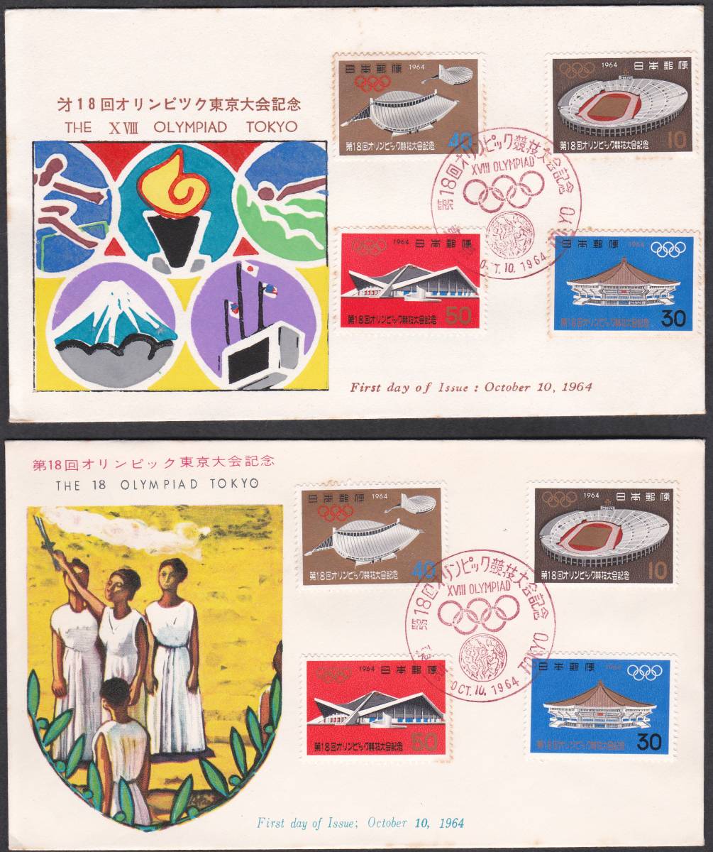 - FDC 1964年 第18回オリンピック競技大会 4貼2種 PEBA