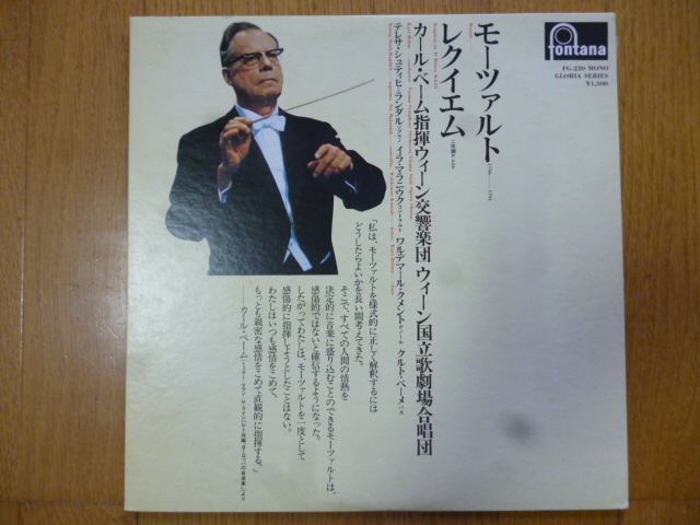 - ベーム指揮 ウィーン交響楽団/モーツァルト:レクイエム 日本フォノグラム FG-220 MONO