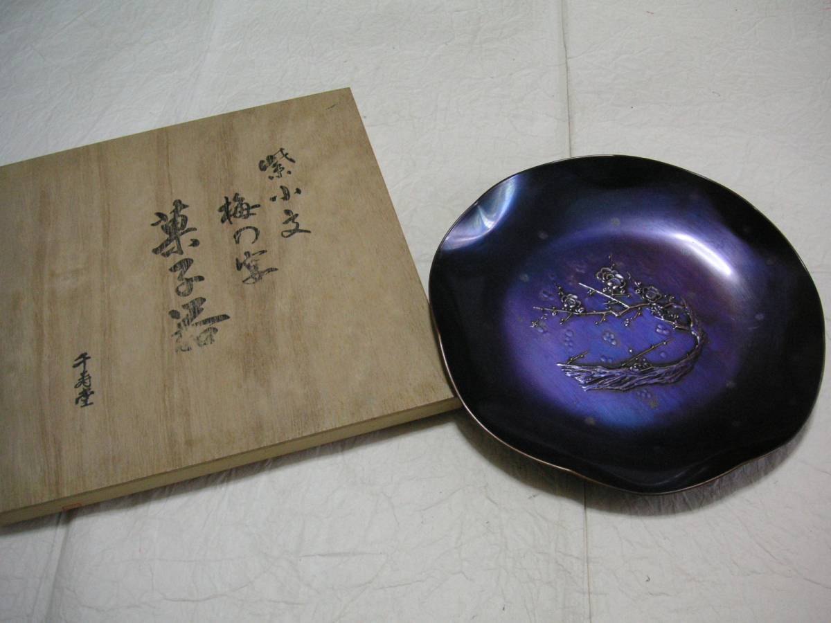 - 越後の銅器 千寿堂 菓子器 紫小文 梅の宴 共箱