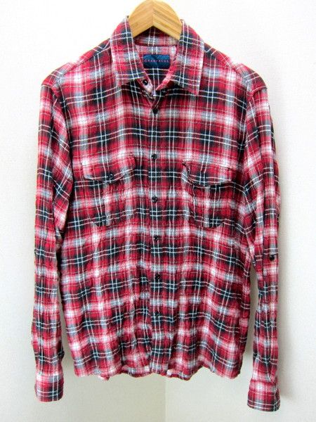 - レイジブルー ★ RAGE BLUE 持っていて間違いなし◎ チェック シャツ 長袖 レッド × ブラック M 王道 アメカジ 古着MIX 合わせやすい♪●E