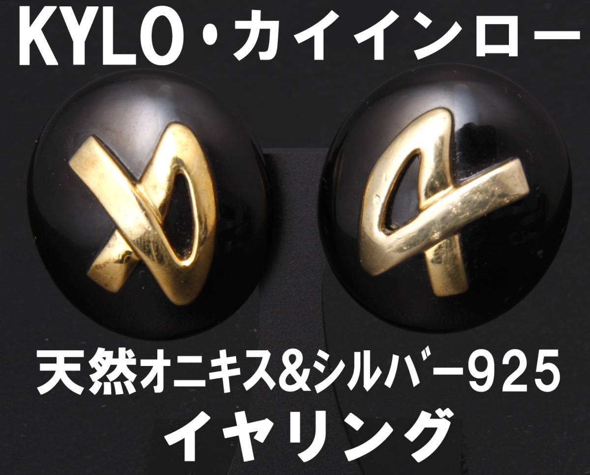 > KYLO カイインロー イヤリング 天然オニキス 925 黒×ゴールドカラー 縦2.6cm 横2.3㎝ 15.9g USED KA-6683