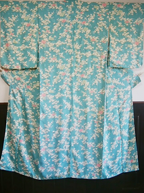 > [小紋のお着物]正絹/袷/身丈155cm/水縹色/躾有り/花柄/唐草花の地模様