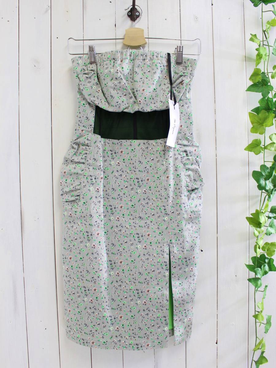- 新品*The Virgnia ヴァージニア*花柄タイトベアワンピース(36)グレー/定価18,000円