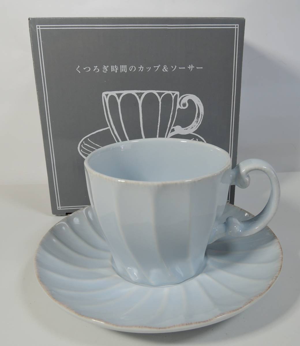 - TM01■KOCHI SHINKIN BANK高知信用金庫 くつろぎ時間のカップ&ソーサー 水色■未使用