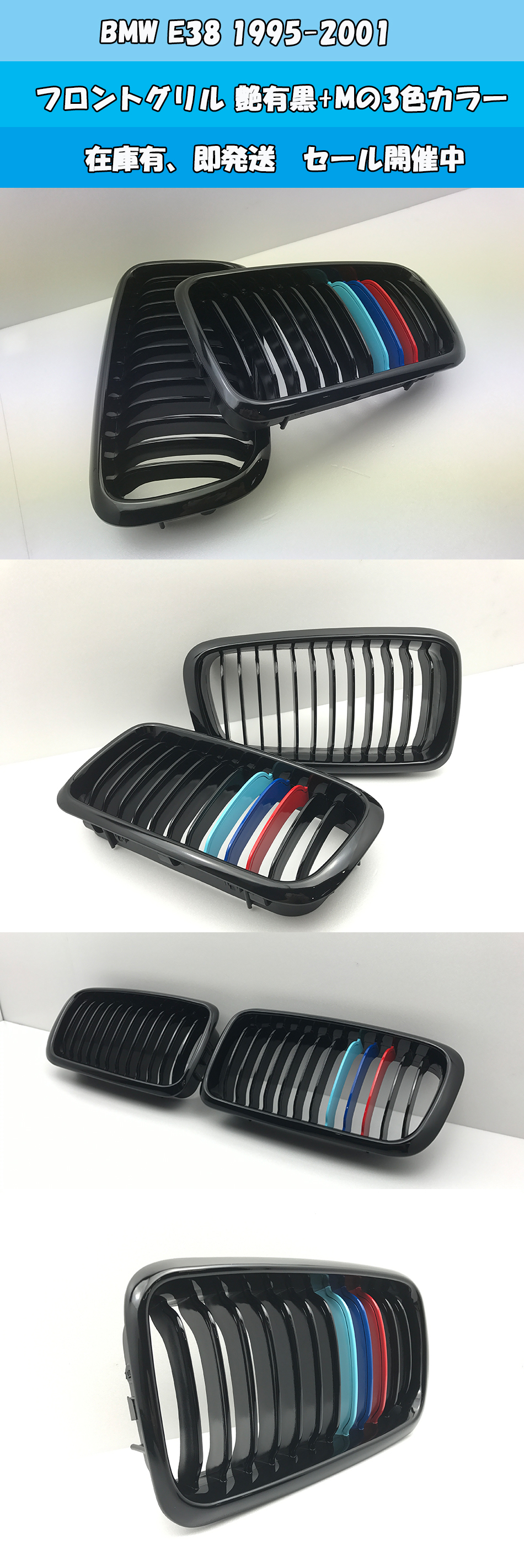 - 純正交換用 左右セット 取付簡単 在庫有 BMW 7シリーズ E38 フロントグリル 光沢黒+Mの3色カラーABS 1995-2001