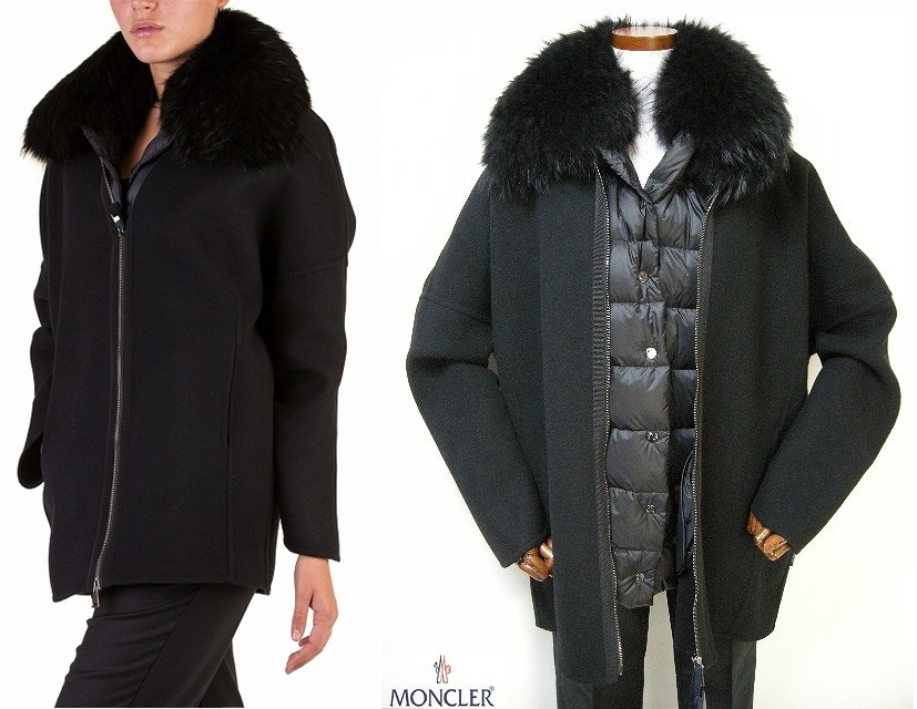 > 定42万■サイズ2■新品 本物■モンクレール/BUXUS/ラクーンファー付きカシミア混ウールダウンコート/ダウンジャケット/レディースMONCLER黒