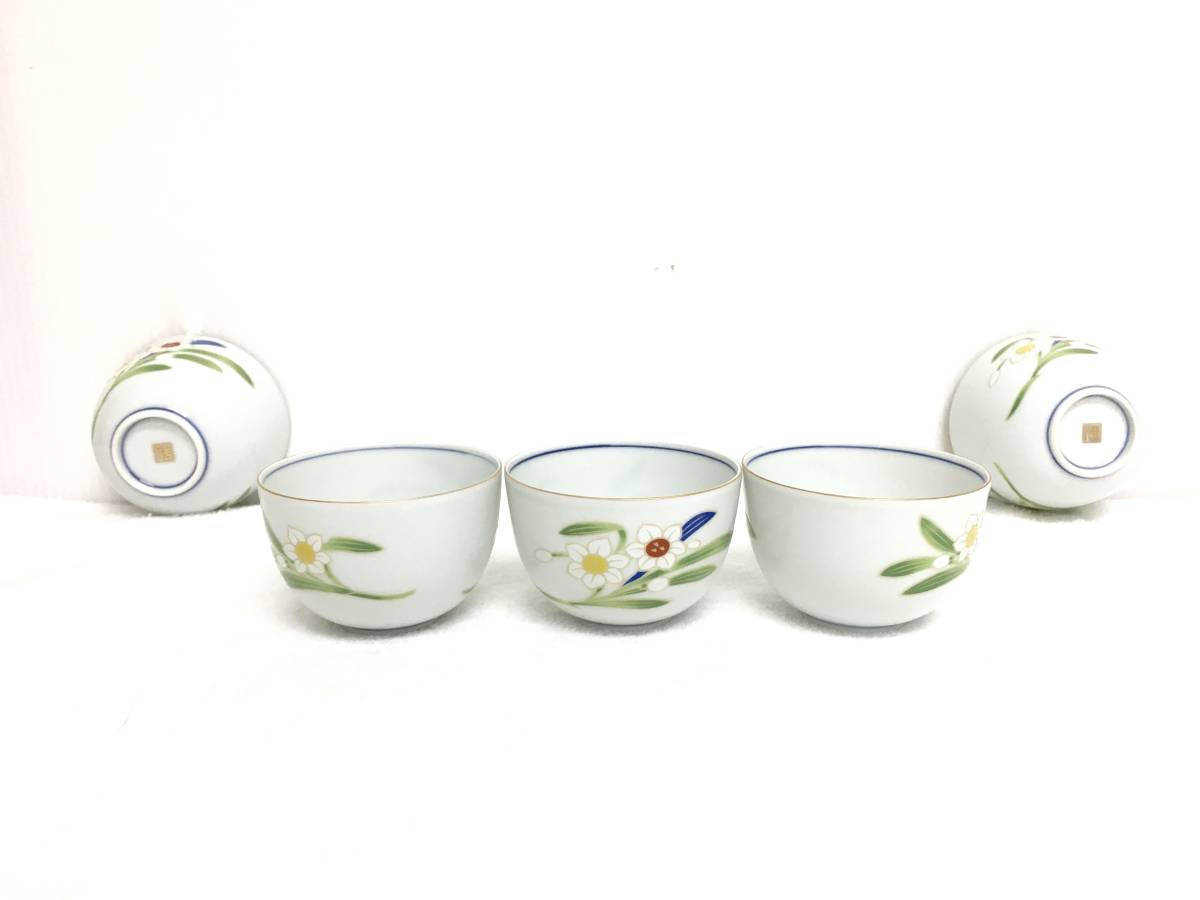 - 未使用品● 京焼 清水焼 京ばん 湯のみ 茶器 和食器 コップ 百合 5客セット 管理 1803 X-2