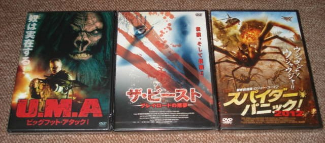 - ★【ザ・ビースト ブレイロードの悪夢】【スパイダー・パニック! 2012】【U.M.A ビッグフット・アタック】:未開封・セル専用DVDソフト3点
