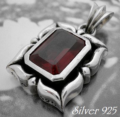 - シルバー925銀のレッドジルコニア[レクタングルカット]付 ペンダント/S&A silver