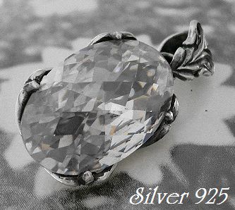 - シルバー925銀のBIGジルコニア[プリズムカット] オーバル ペンダント/シルバーアクセALL50%OFF