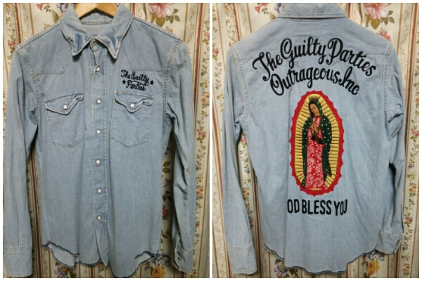 - ワコマリアwackomariaユーズド加工デニムウエスタン刺繍シャツ