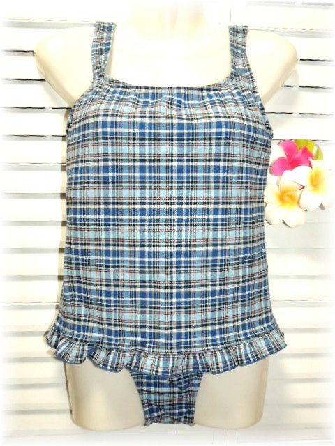 - JUSTER 日本製 タンキニ セパレート水着 11号/L ブルーチェック(スリット糸入り)