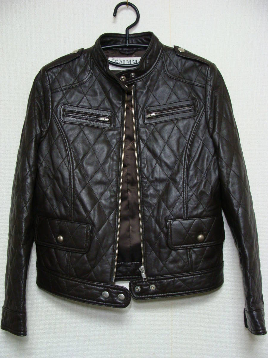 - BALMAIN バルマン ◇ ラム シープ スキン レザー 皮 革 キルティング シングル ライダース ジャケット ◇ エポーレット ショート 丈
