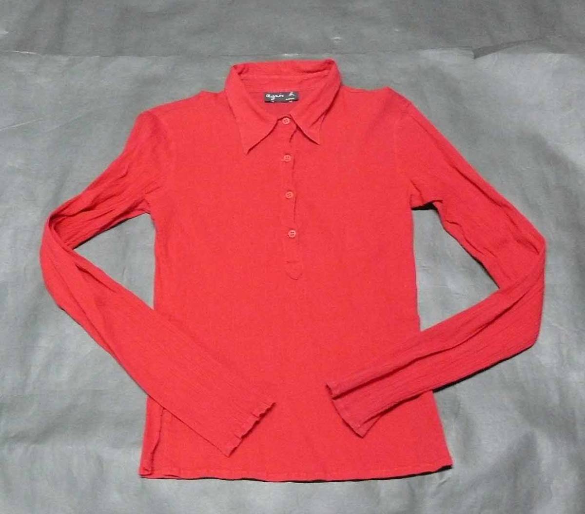 - アニエスベー 長袖シャツ プリーツ生地 エンジ