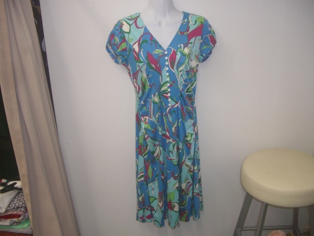 - AGATHA BOUTIOUE(アガサ)綿100%フレンチ袖プリントワンピース☆サイズM
