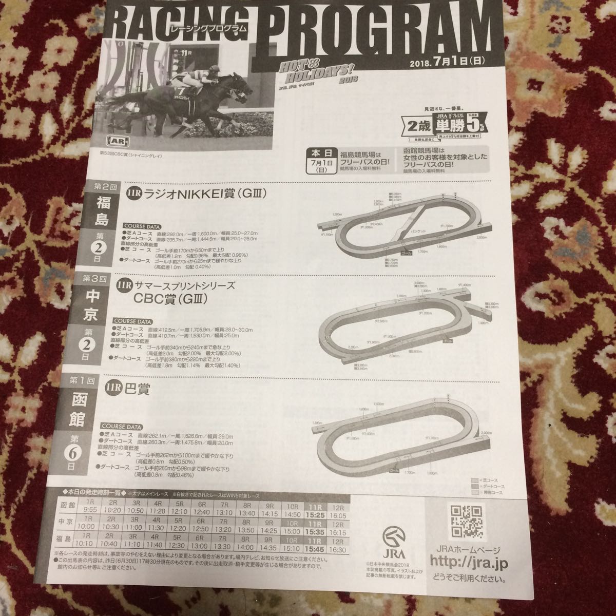- JRAレーシングプログラム2018.7月1日(日)、ラジオNIKKEI賞(GⅢ)、CBC賞(GⅢ)、巴賞