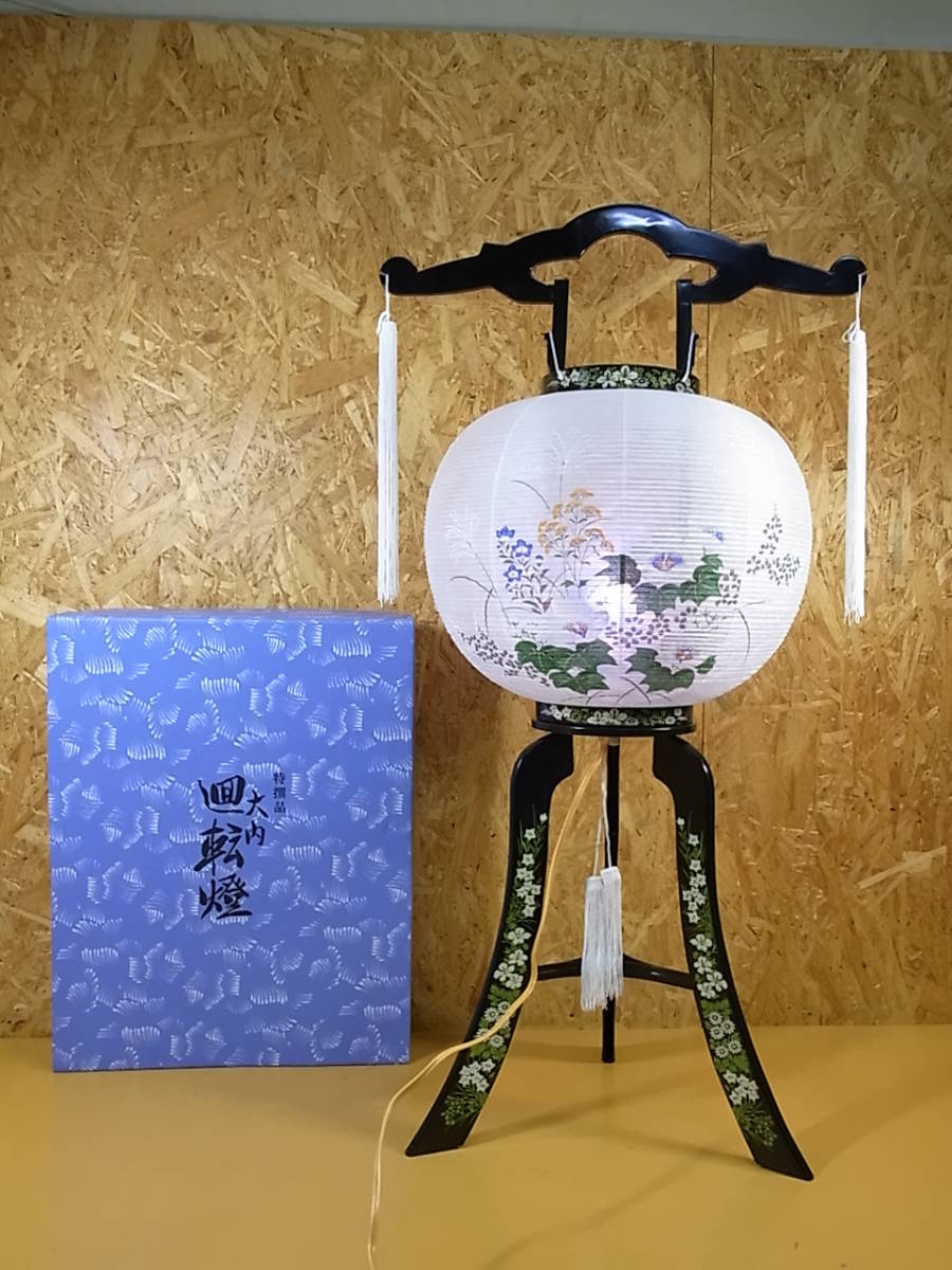 - □Ba/190☆行灯(あんどん) 大内回転燈☆芙蓉柄 11号☆P黒蒔絵☆動作OK
