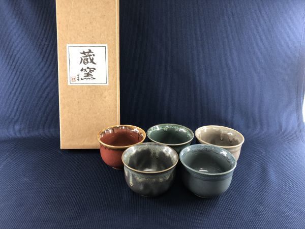 - 未使用品★ 玉峰窯 蔵窯 湯のみ 5客 セット 箱あり管理1807 N-2