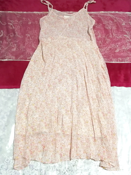 > ピンクオレンジ花柄シフォンネグリジェキャミソールロングワンピース Pink orange floral pattern chiffon negligee camisole dress