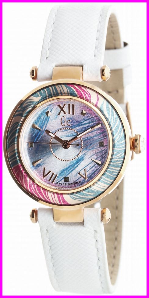 > 【GUESS ゲス GC】Guess Collection レディース・スチールケース クォーツ ホワイトレザーストラップ Y12004L7 時計