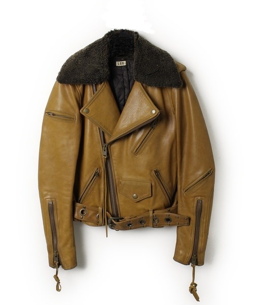 > LGB ルグランブルー ◇ 襟 ムートン ホース レザー ダブル レザー ベルト ライダース バイカー ジャケット ◇ 馬 皮 革