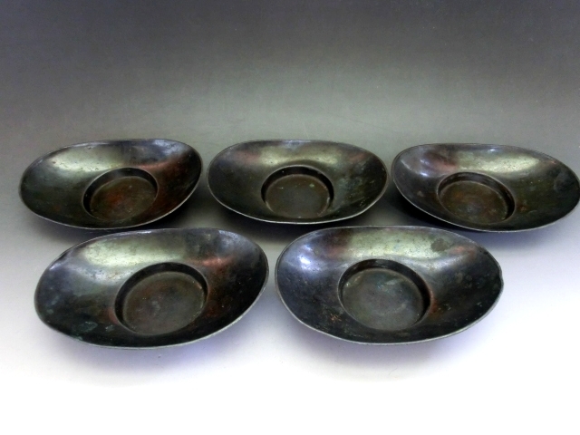 - 茶托■小判型茶たく 5客 黒銅 煎茶器 湯呑皿 お茶道具 古玩 唐物 中国 古美術 時代物 骨董品■