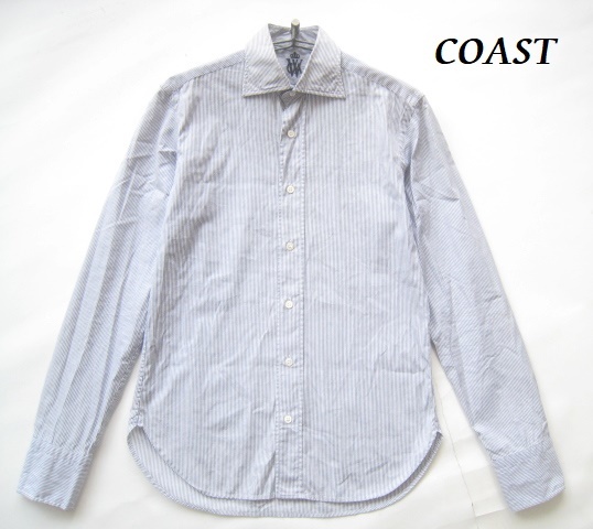 - 極上!!COAST コースト*ストライプ柄長袖シャツ S 白×紺