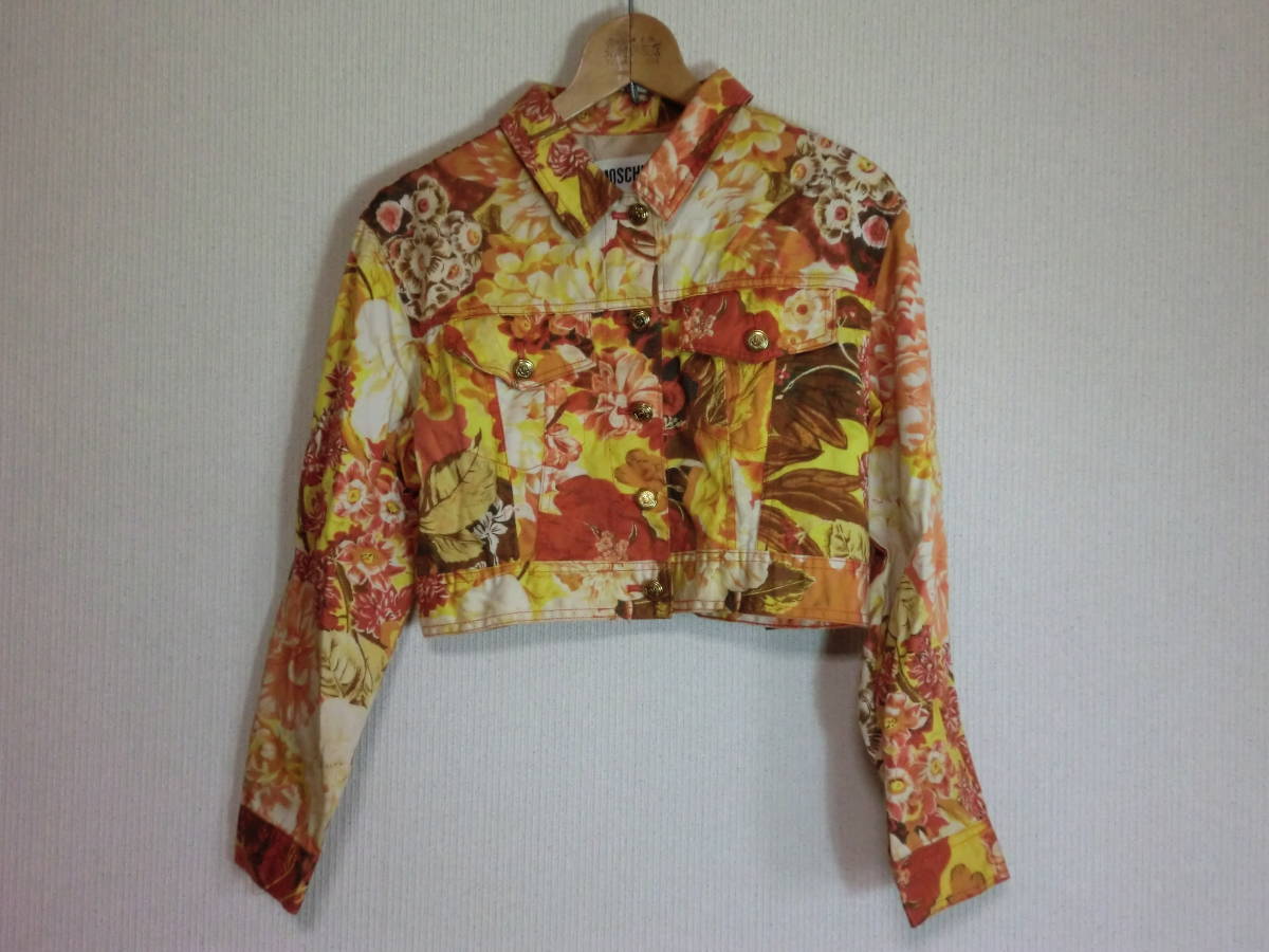 > レア 90s 90年代 MOSCHINO Milano モスキーノ 花柄総柄 ショート丈 ジャケット M ジェレミー Gジャン デザイナーズ ヴィンテージ vintage